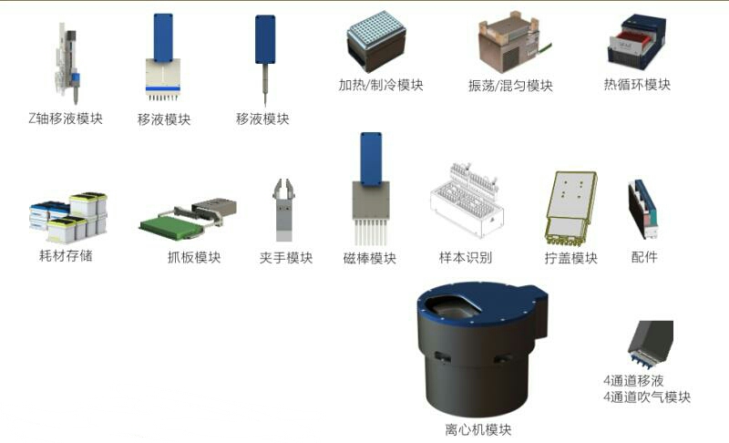 工作站可以内置XYZ三轴机械臂、各种适配抓手、自动移液或稀释分配系统,气动与伺服系统将精密抽送泵与精密称量等组件,通过PLC或上位机将分离及浓缩前后的各种仪器模块统筹协调。